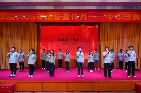 赛场上,各学院个个精神饱满,为我们带来一场别开生面的文化盛宴。新材料与绿色化工学院师生带来《月光下的中国》,如一幅水墨画卷晕染开对祖国的深情告白;师范学院的《长河吟》气势磅礴,带大家聆听千年波涛的回声;数理学院以独特方式诠释《沁园春·雪》,让朗朗书声与理性思维碰撞出别样火花;外国语学院师生搭建语言桥梁,从另一个视角展现《月光下的中国》的贯通中西浪漫情怀;机电学院《永不消失的声音》挖掘岁月中沉淀的振聋发聩之声,传递坚定信念与奋进力量;计算机学院学子以科技青年赤子之心咏叹《民族的丰碑》,致敬铸就民族脊梁的英雄;国际学院师生经典新绎《木兰辞》,重温巾帼英雄的传奇担当;艺术学院的深情之作《等待》,为我们演绎了一段关于爱与坚守的动人篇章;电气学院带来的深情的朗诵《这盛世如您所愿》,以此致敬我们伟大的时代和开辟时代的伟人;土建学院的同学们以青春的名义,向祖国献上最深情的赞歌——《祖国,我用青春的名义为你歌唱》;未来健康的守护者们——医学院的同学,用昂扬的激情朗诵《中华少年》,展现我中华少年郎的凌云壮志;环境学院带观众重返橘子洲头,领略《沁园春·长沙》中的万丈豪情;经管学院《红色的七月》将比赛推向又一个高潮,在激昂诗句中感受火热赤诚。