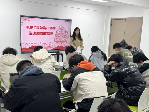 本网消息 机电工程学院于3月30日在毓成求实一站式社区102室举办资助诚信知识竞赛,学院辅导员程媛、35名学生代表参加此次活动。