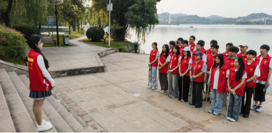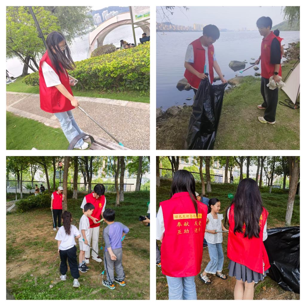 在湖岸清理环节,队长周君昊将志愿工作进行了细致的分配。志愿者们身着统一服装,手持环保工具,在磁湖的自助烧烤营地展开地毯式清洁。活动中,多名小朋友自发加入巡湖行动,与志愿者共同捡拾塑料瓶、烟头等污染物。