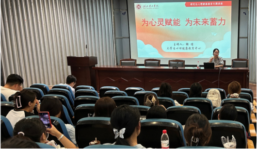 校大学生心理健康教育中心解倩老师为全体新生开展研究生心理健康教育。解倩以《为心灵赋能,为未来蓄力》为题,引导新生积极调适心理状态,科学应对学业压力,提升自我认知与情绪管理能力,以积极健康的心理迎接新阶段的挑战。
