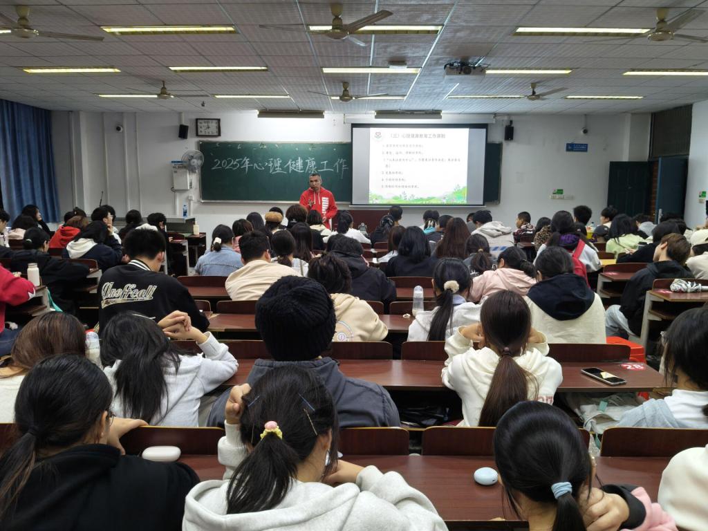 本网消息 10月30日晚,校大学生心理健康教育中心在J3-202教室,面向校、院两级心理健康部见习及2025级各班心理委员,组织开展了2025年心理健康工作学生干部培训会。本次培训由杨雨婷、吴海银两位老师联袂授课,为200多名学生干部送上了系统的“心理赋能课程”。