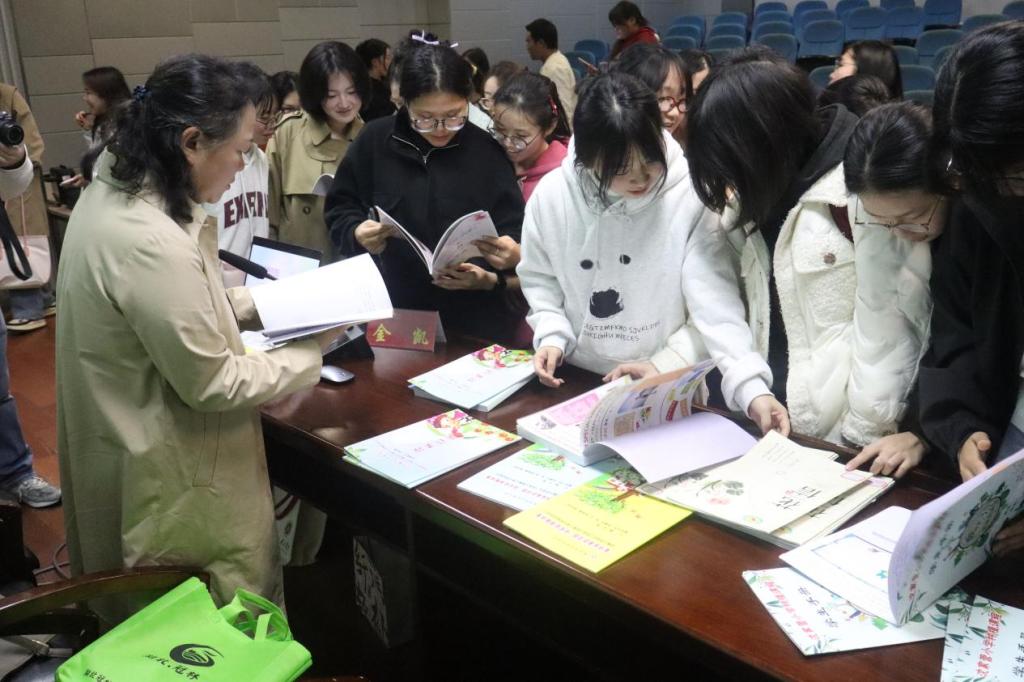 互动讨论环节,同学们结合自身体会踊跃提问,金凯老师逐一给予了细致解答。金凯老师还带来了一些她所教学生们精心制作的课外作业本,一本本精美、认真的作业,让在场学生惊叹不已。这场讲座惊喜不断,为在座的师范生搭建了连接大学理论学习与未来一线教学实践的桥梁。