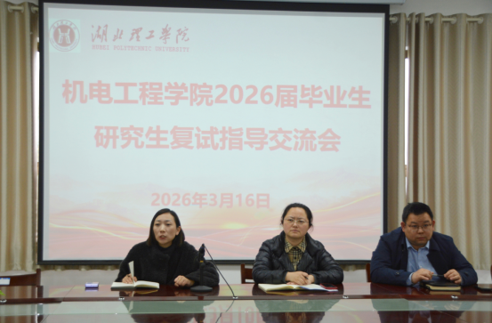 本网消息 3月16日下午,机电工程学院在K1-414举行了2026年硕士研究生复试指导交流会。学院党总支部书记杨菁、副书记熊泽敏、副院长吴小艳出席此次会议,毕业班班主任及考研学子参加会议。
