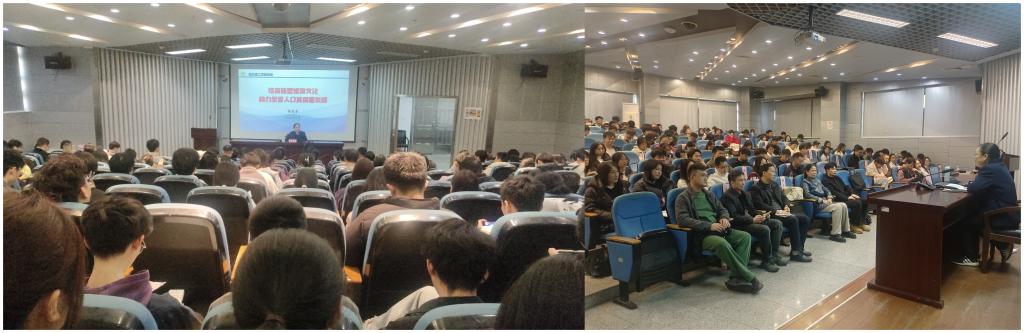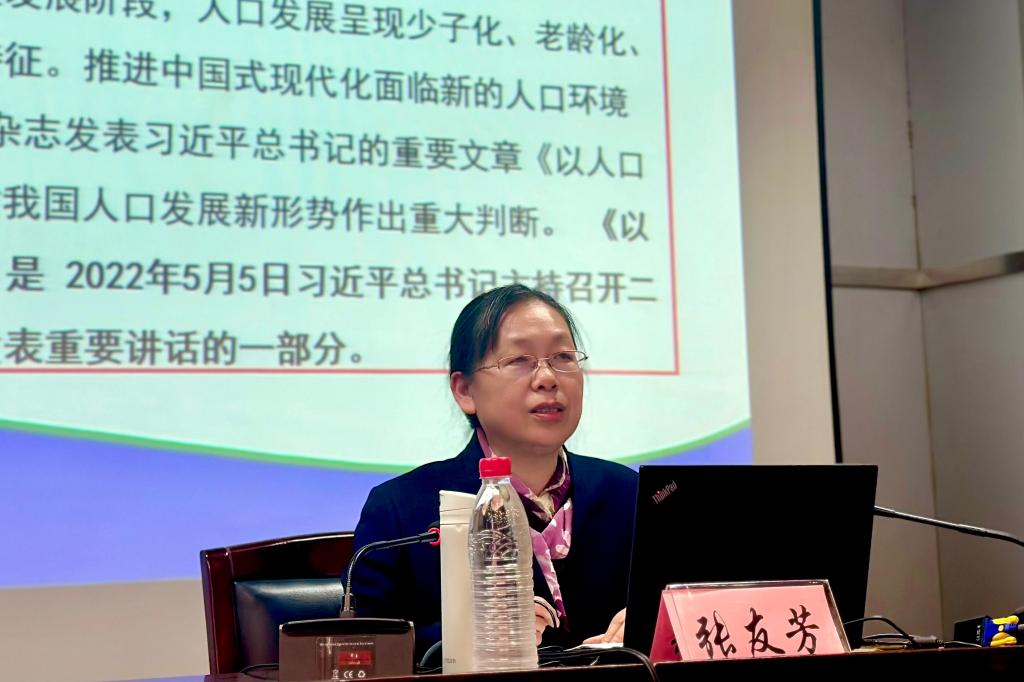 张友芳巡视员以《培育新型婚育文化,助力全省人口高质量发展》为题,结合自身工作实践与青年成长实际,系统阐述了构建新型婚育文化的重要意义,深入分析了新时代人口发展形势与婚育文化变迁脉络,全面介绍了新型婚育文化建设的实践路径。她聚焦青年群体现实关切,深刻剖析当代青年婚育观念变化特点,并就师生普遍关注的问题进行了细致回应。