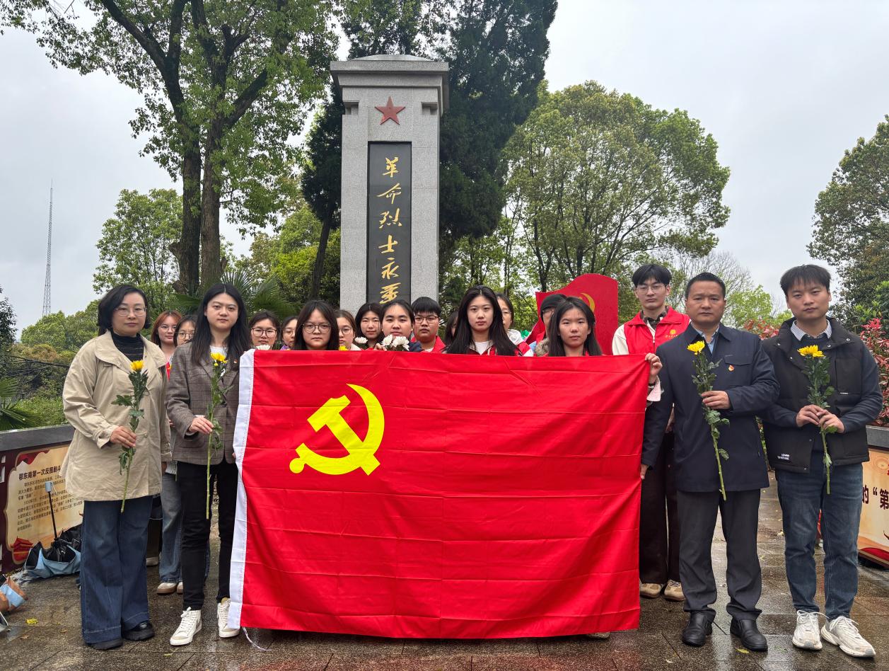 在革命烈士纪念碑前,党总支副书记易定国带领学院师生整齐列队、肃立致敬。伴随着庄重肃穆的仪式氛围,全体人员向革命先烈三鞠躬、默哀追思,并依次敬献鲜花,以最诚挚的敬意缅怀英烈们的英勇事迹与不朽功勋。随后,全体党员面向鲜红的党旗,高举右拳,庄严重温入党誓词,铿锵有力的誓言在陵园上空回荡,进一步坚定了理想信念、强化了使命担当。