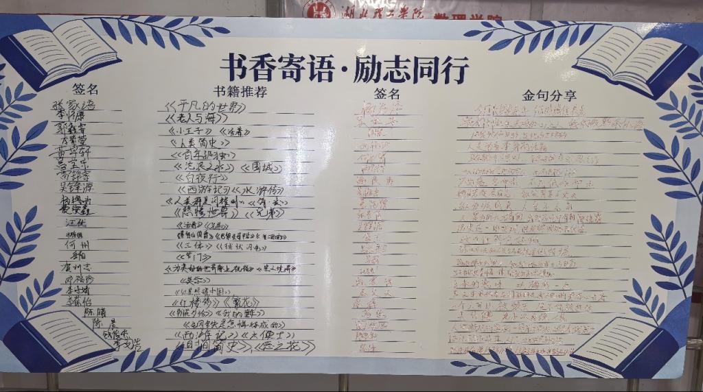 书籍滋养心灵,阅读点亮青春。本次“书香寄语,励志同行”世界读书日活动,不仅点燃了同学们的阅读热情,也丰富了校园文化的温度与厚度。愿书香飘满每一个角落,愿励志精神温柔地融入我们每一天的学习与生活。