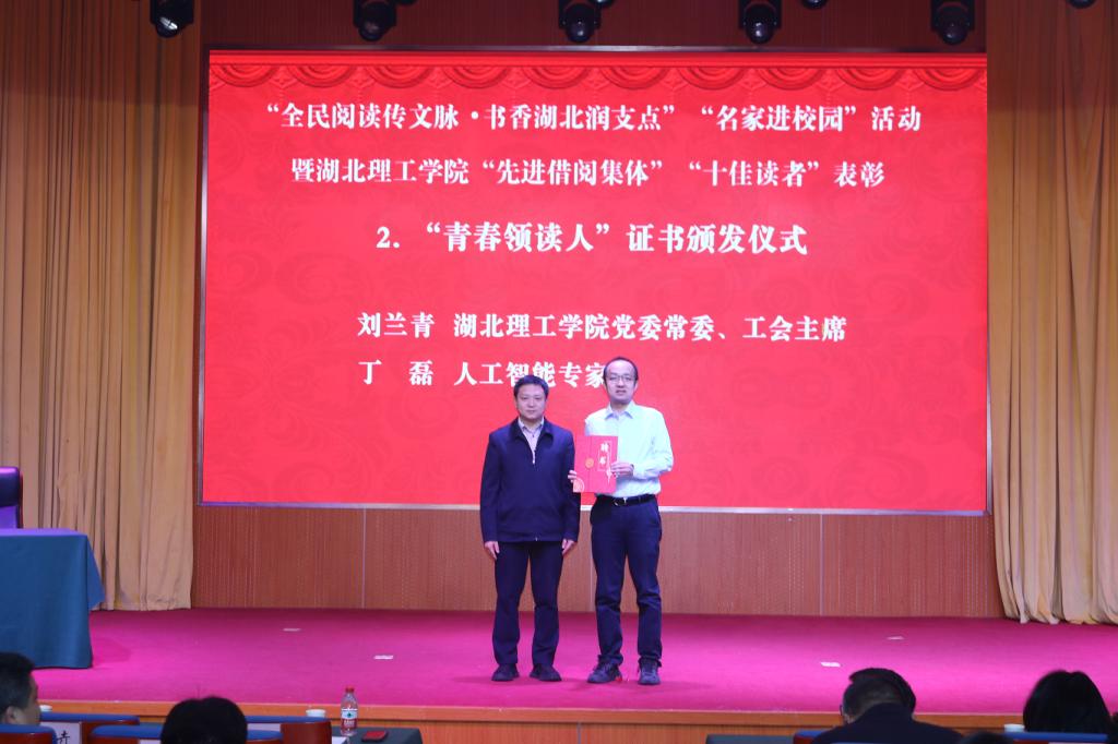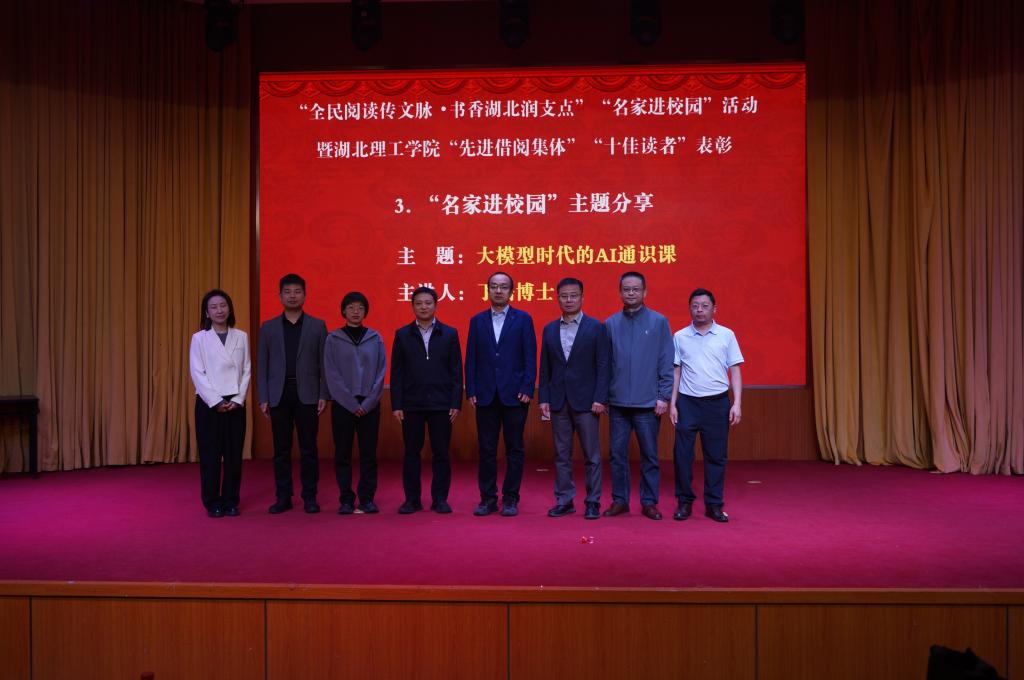本网消息 4月25日上午,学校在豁度楼208报告厅举办“全民阅读传文脉·书香湖北润支点”“名家进校园”活动暨2025年度“先进借阅集体”“十佳读者”“优秀读者”表扬大会。校党委常委、工会主席刘兰青,黄石市委宣传部新闻出版科负责人曹小卉,黄石市新华书店党支部书记、经理胡涛,黄石市新华书店纪检委员、副经理王莎,人工智能领域专家丁磊博士及学校各相关部门、学院领导、师生代表出席了活动。