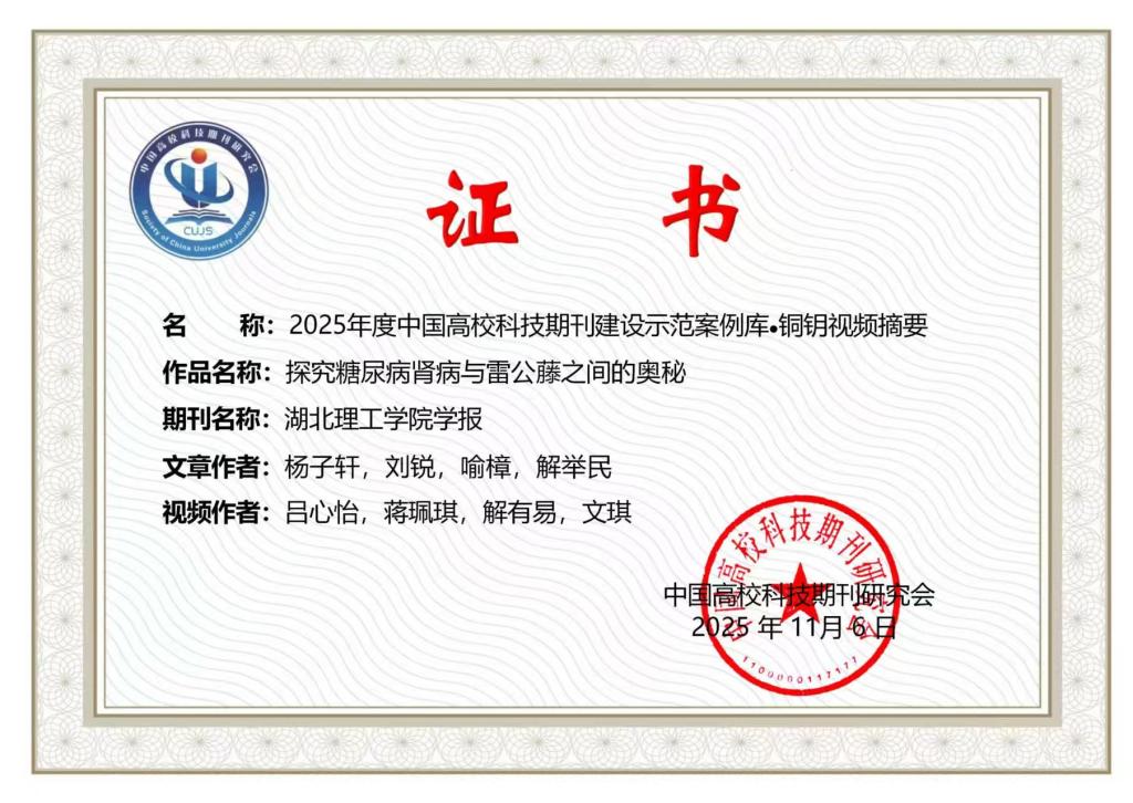 - 学报论文视频摘要获中国高校科技期刊研究会金银铜三项奖励