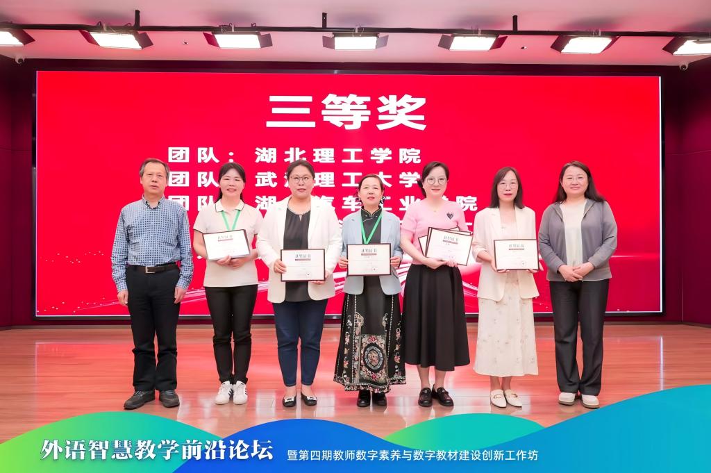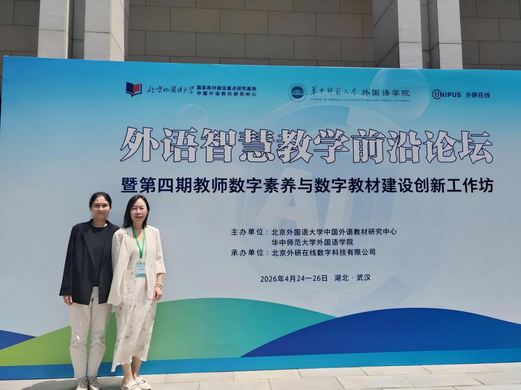 本网消息 4月24日至26日,“外语智慧教学前沿论坛暨第四期教师数字素养与数字教材建设创新工作坊”在华中师范大学成功举办。我校外国语学院邹琼、郑青两位老师应邀出席。邹琼老师团队荣获“AIGC赋能数字教材作品赛”三等奖。